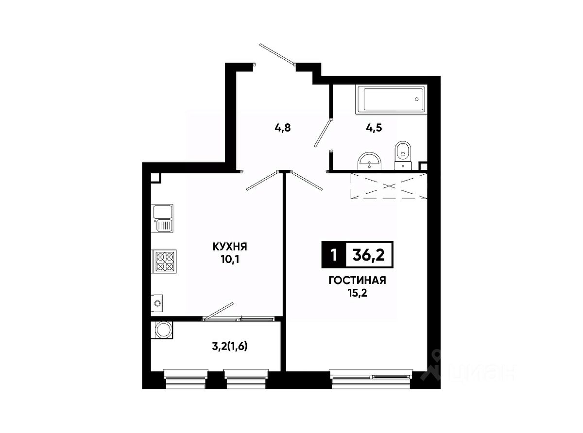 Общая площадь36,2 м²