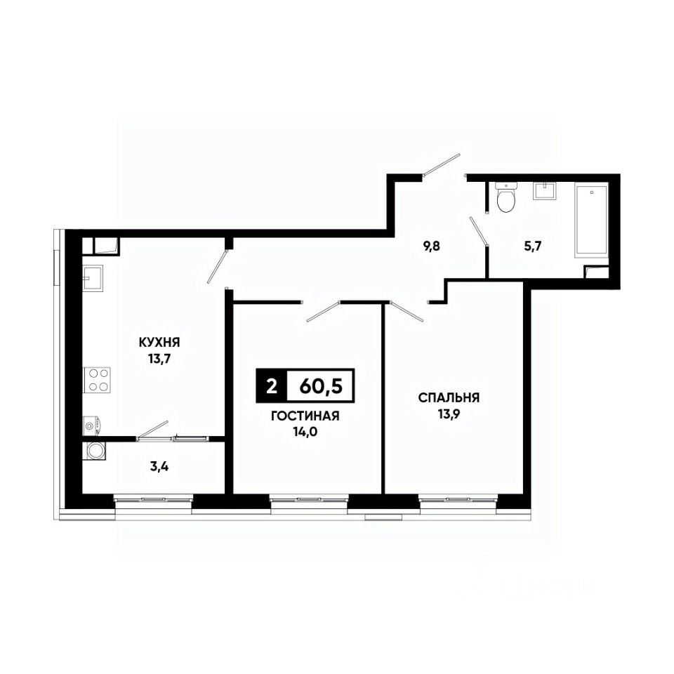 Общая площадь60,5 м²