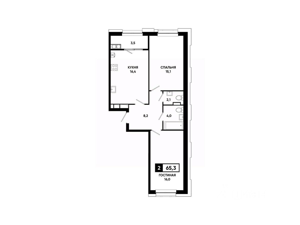 Две изолированные комнаты и просторная кухня-гостиная — максимум комфорта для жизни и работы;