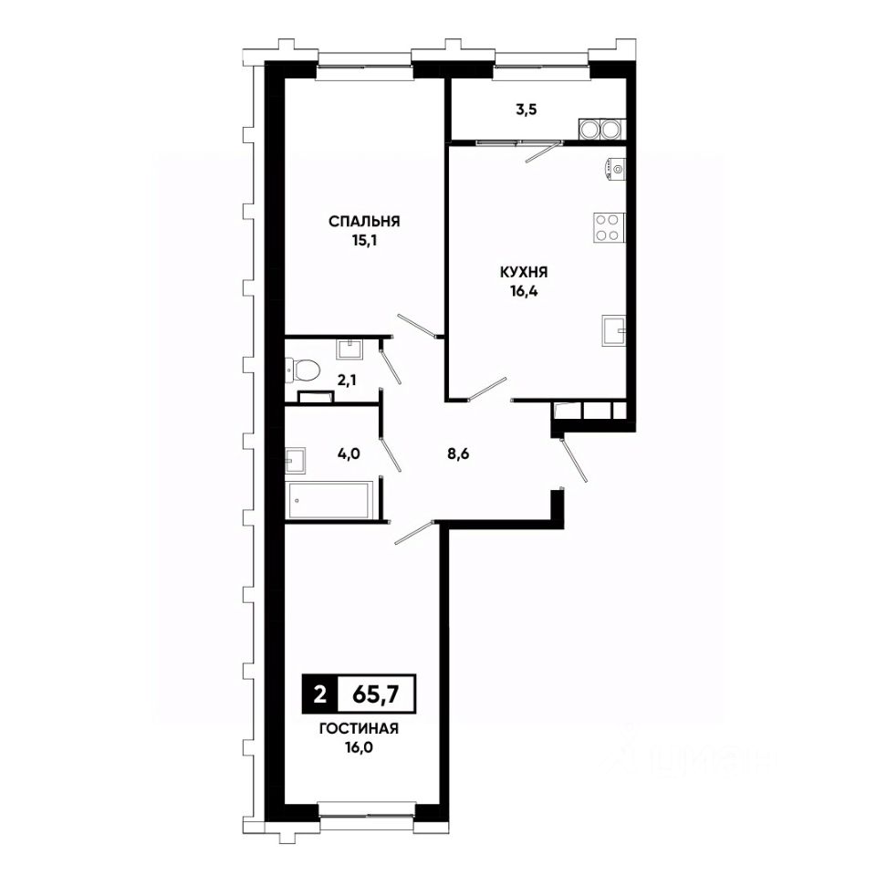 Общая площадь65,7 м²