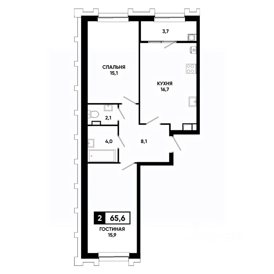 Общая площадь65,6 м²