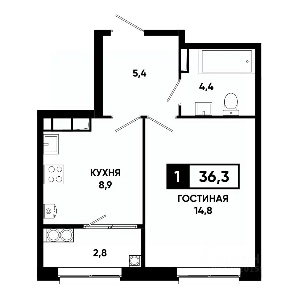 Общая площадь36,3 м²