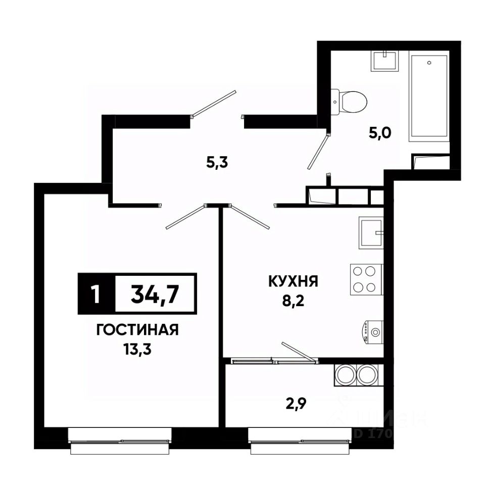 Общая площадь34,7 м²