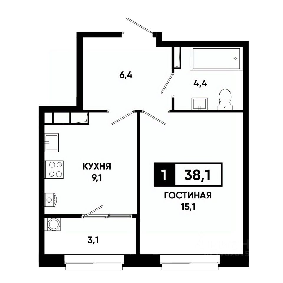 Общая площадь38,1 м²
