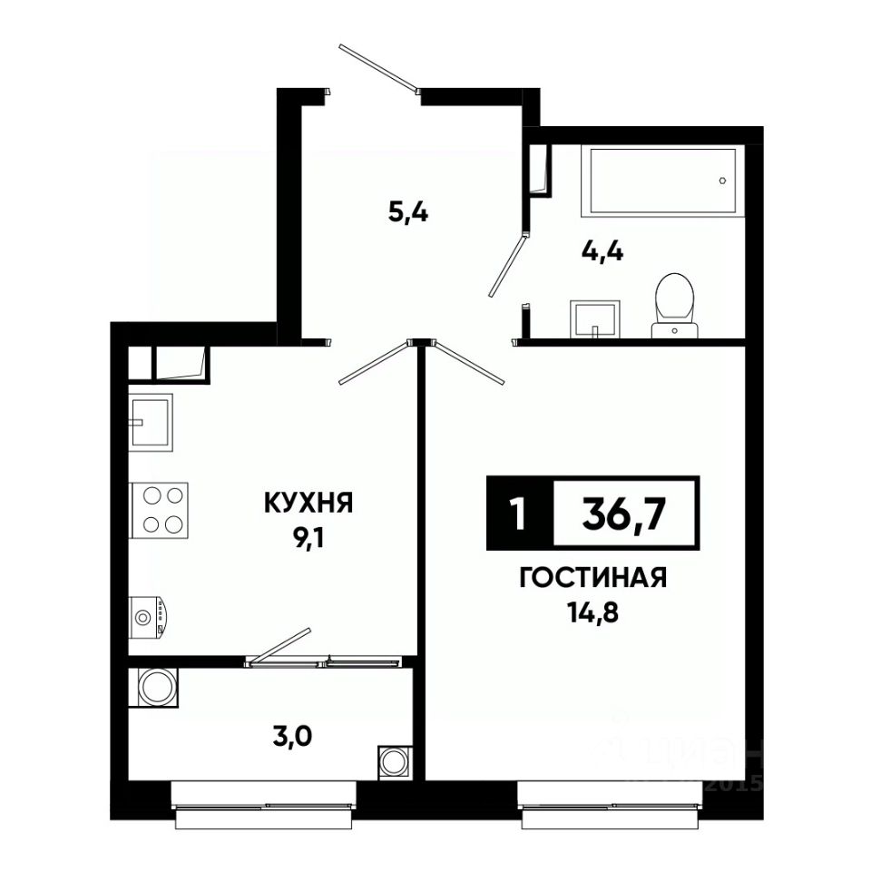 Общая площадь36,7 м²