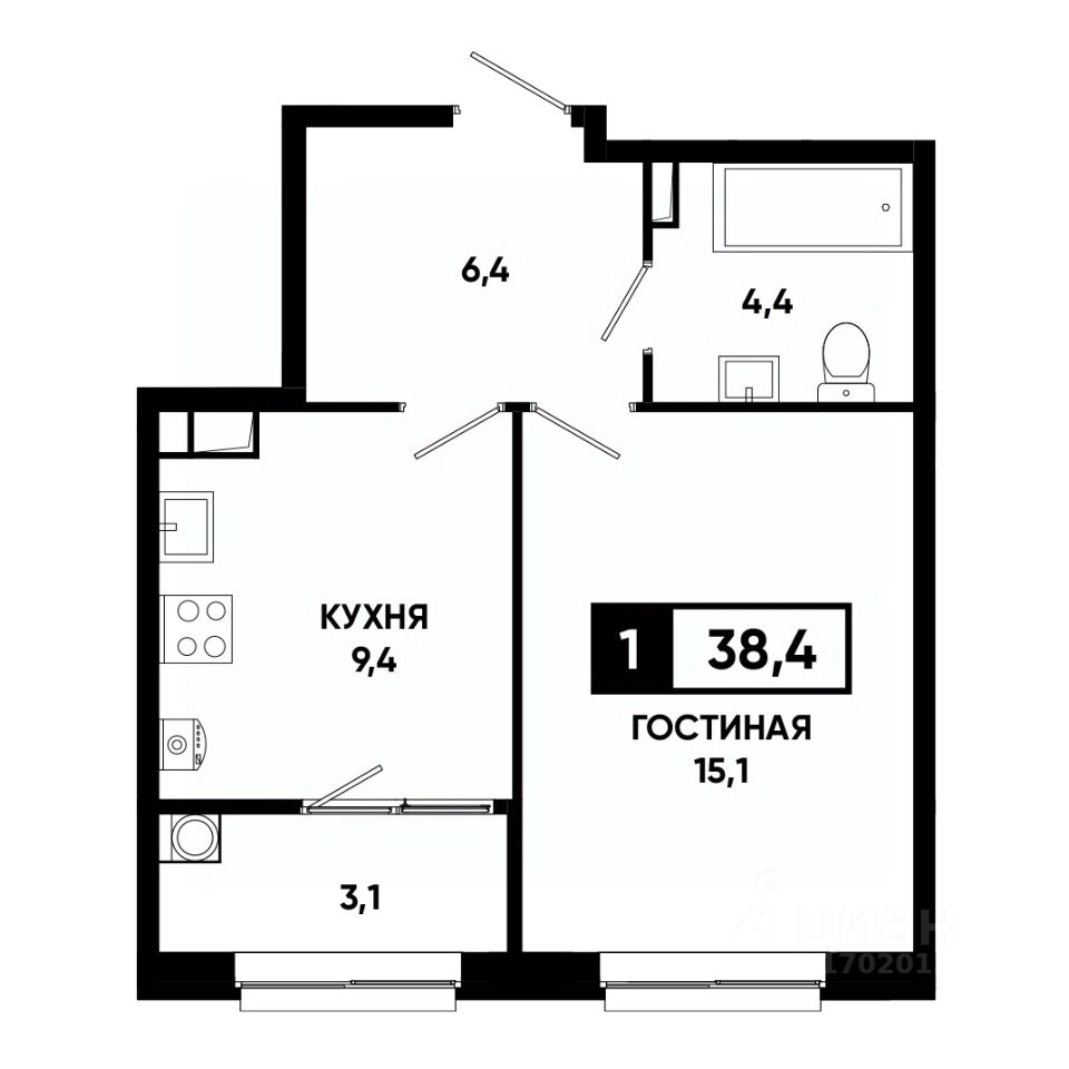 Общая площадь38,4 м²