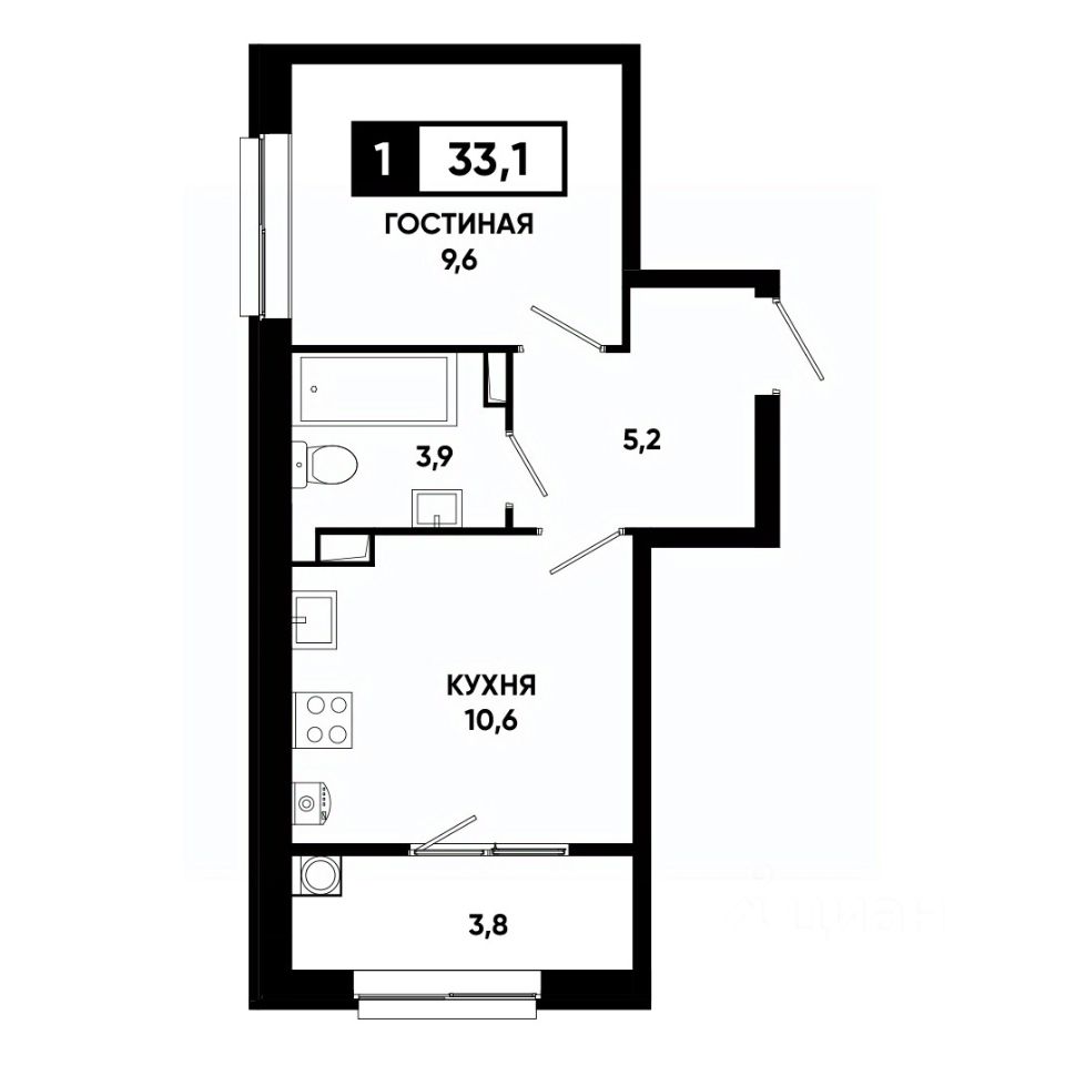 Общая площадь33,1 м²