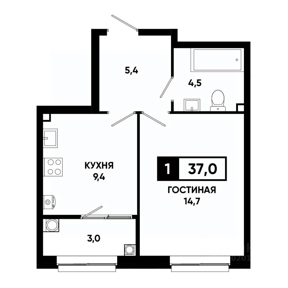 Общая площадь37 м²