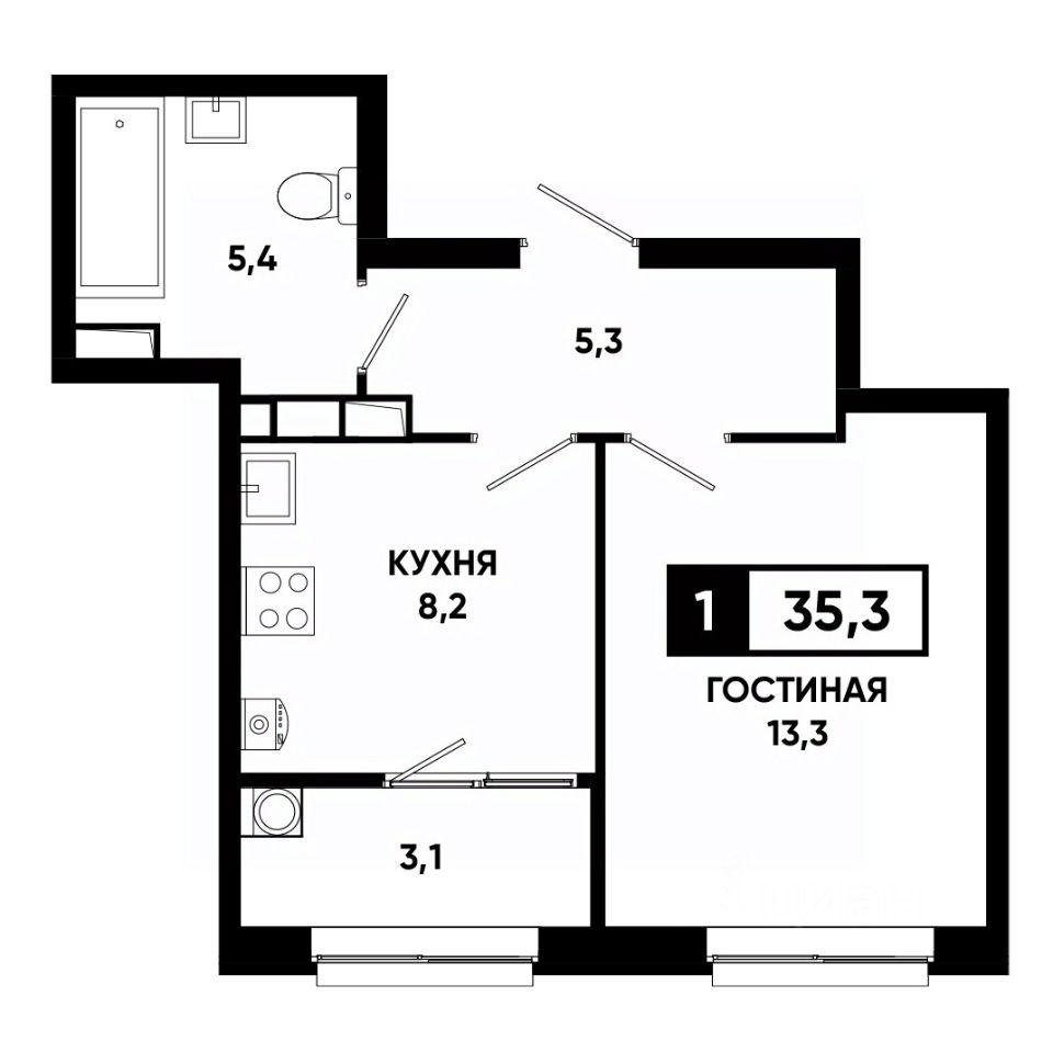 Общая площадь35,3 м²