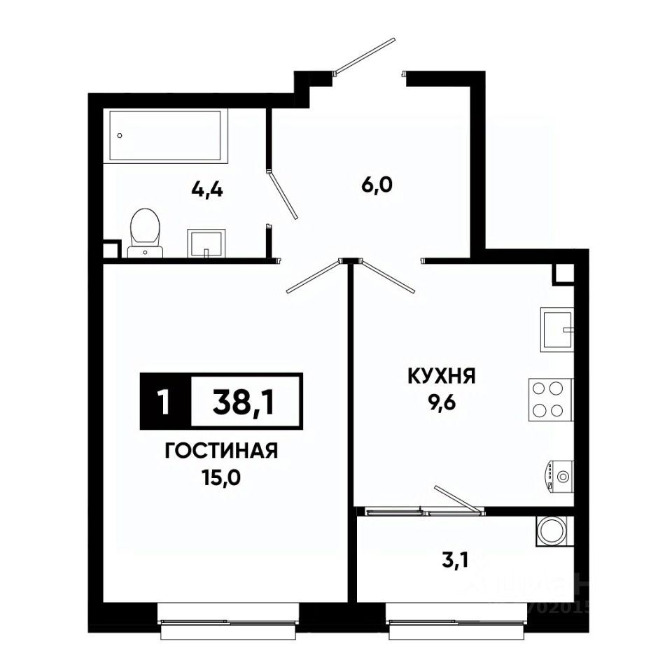 Общая площадь38,2 м²