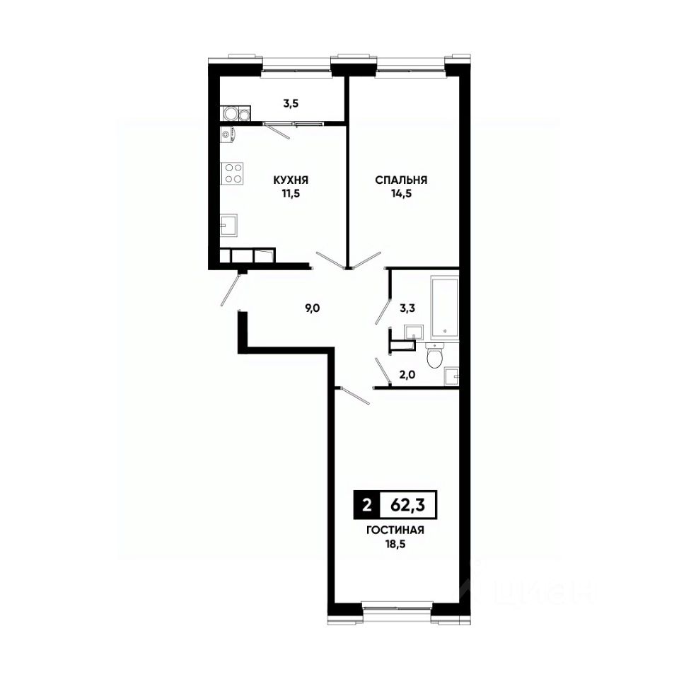 Общая площадь62,3 м²