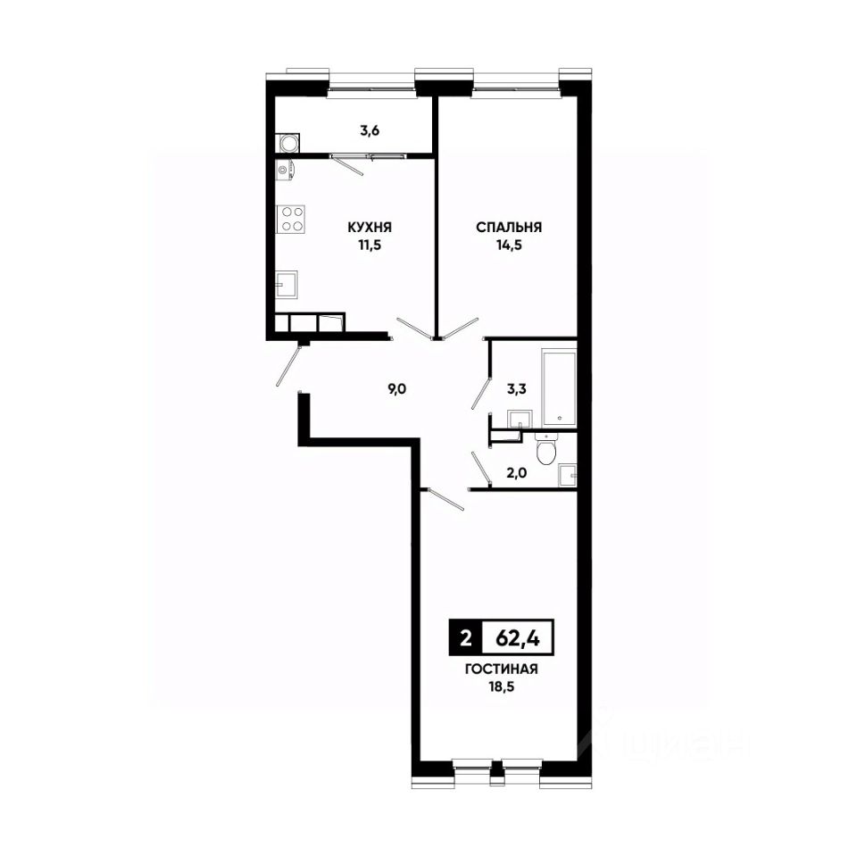 Общая площадь62,4 м²