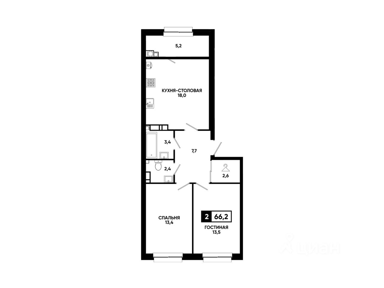 Общая площадь66,2 м²