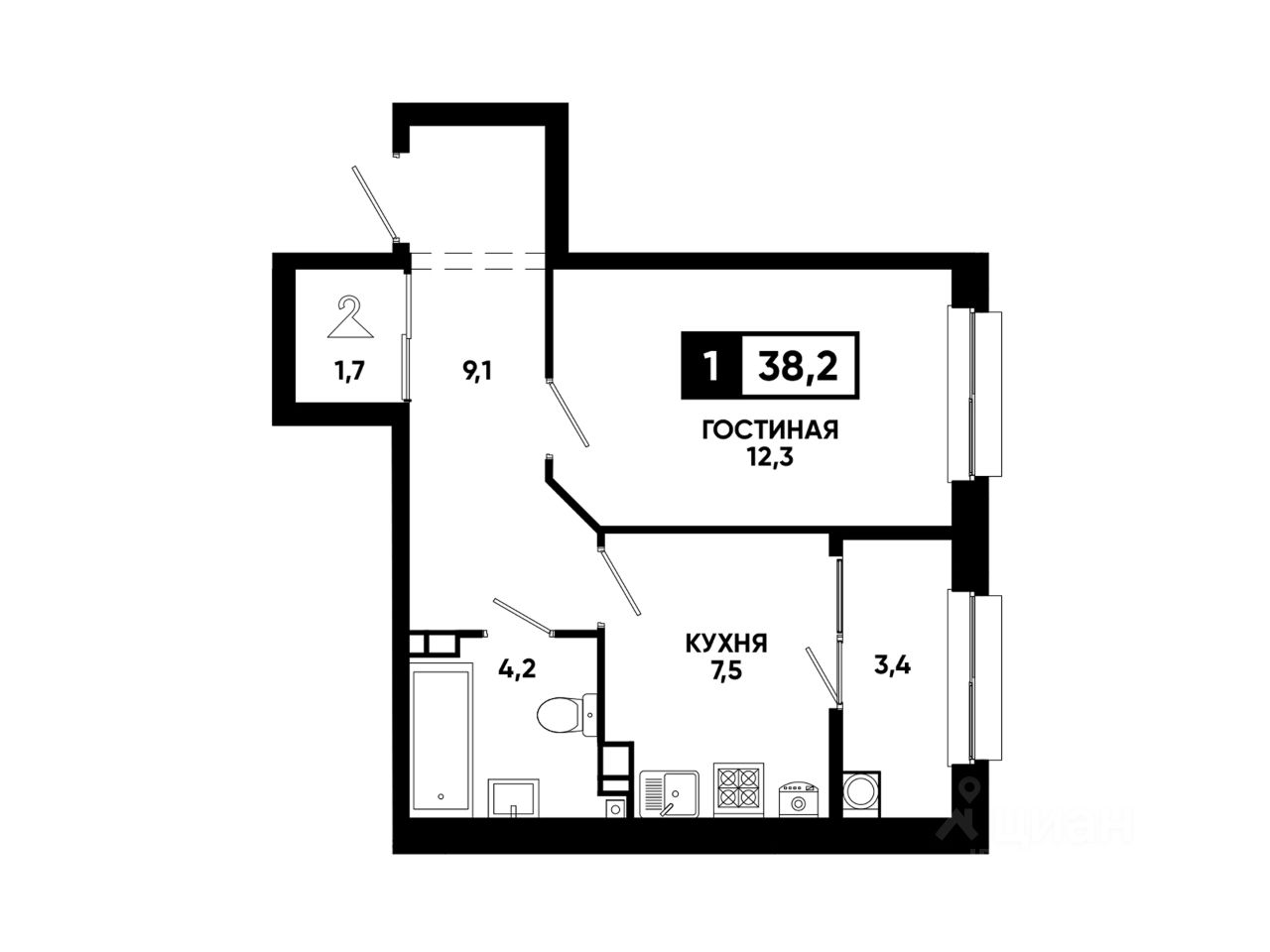Общая площадь38,2 м²