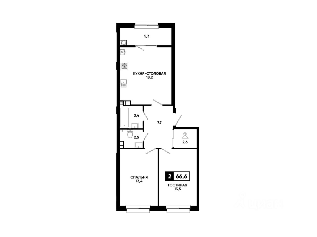 Общая площадь66,6 м²