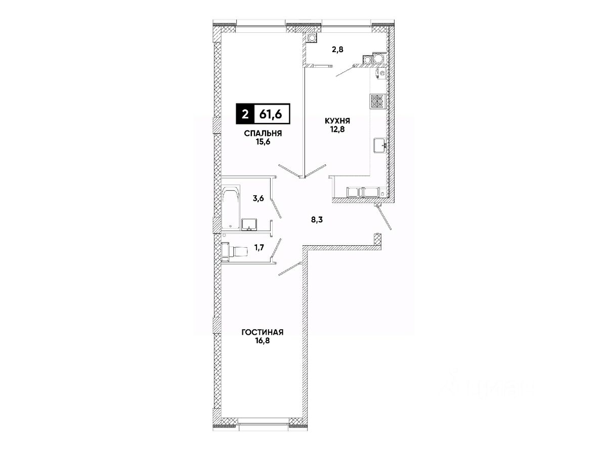 Общая площадь61,6 м²