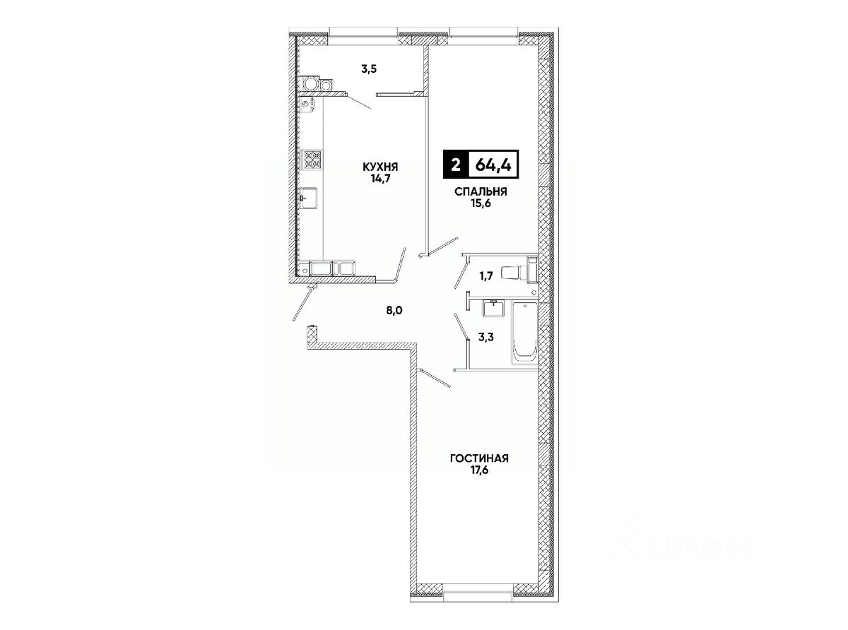 Общая площадь64,4 м²