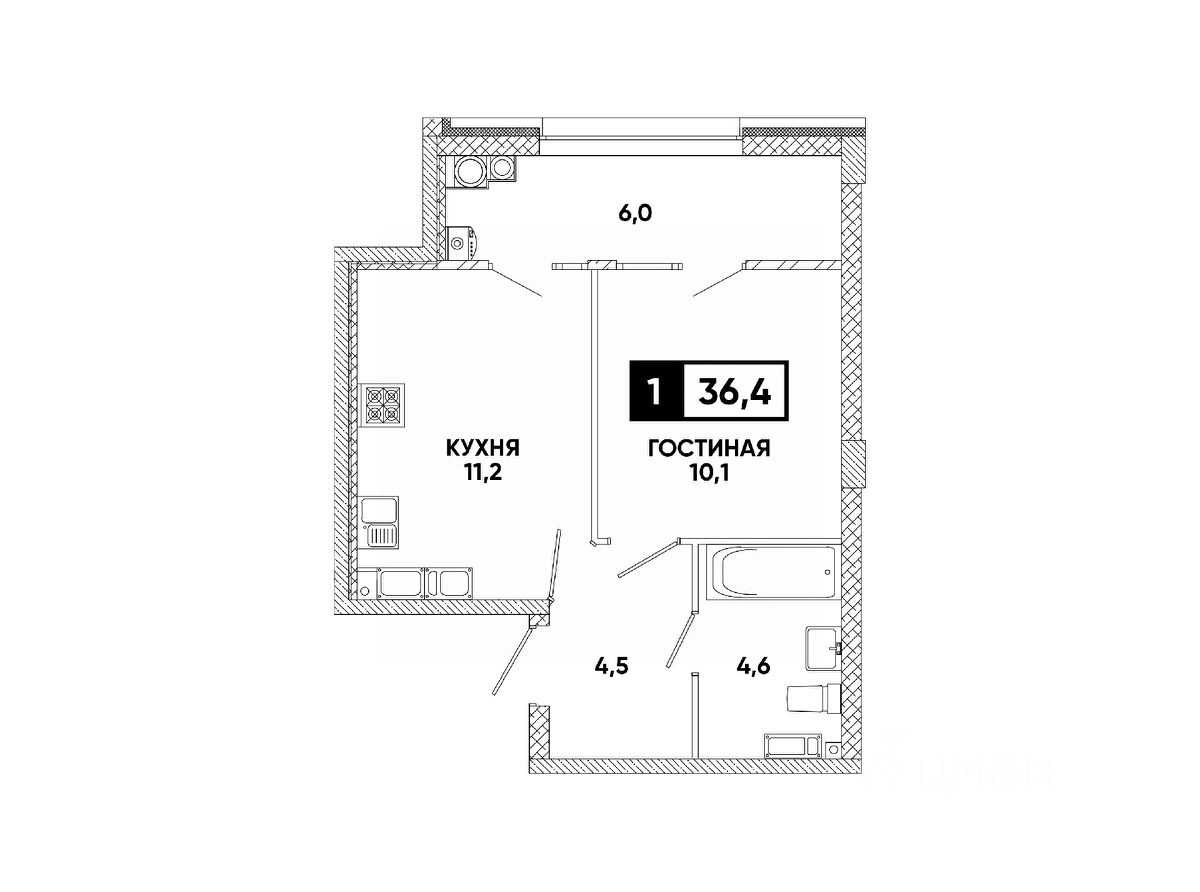 Общая площадь36,4 м²