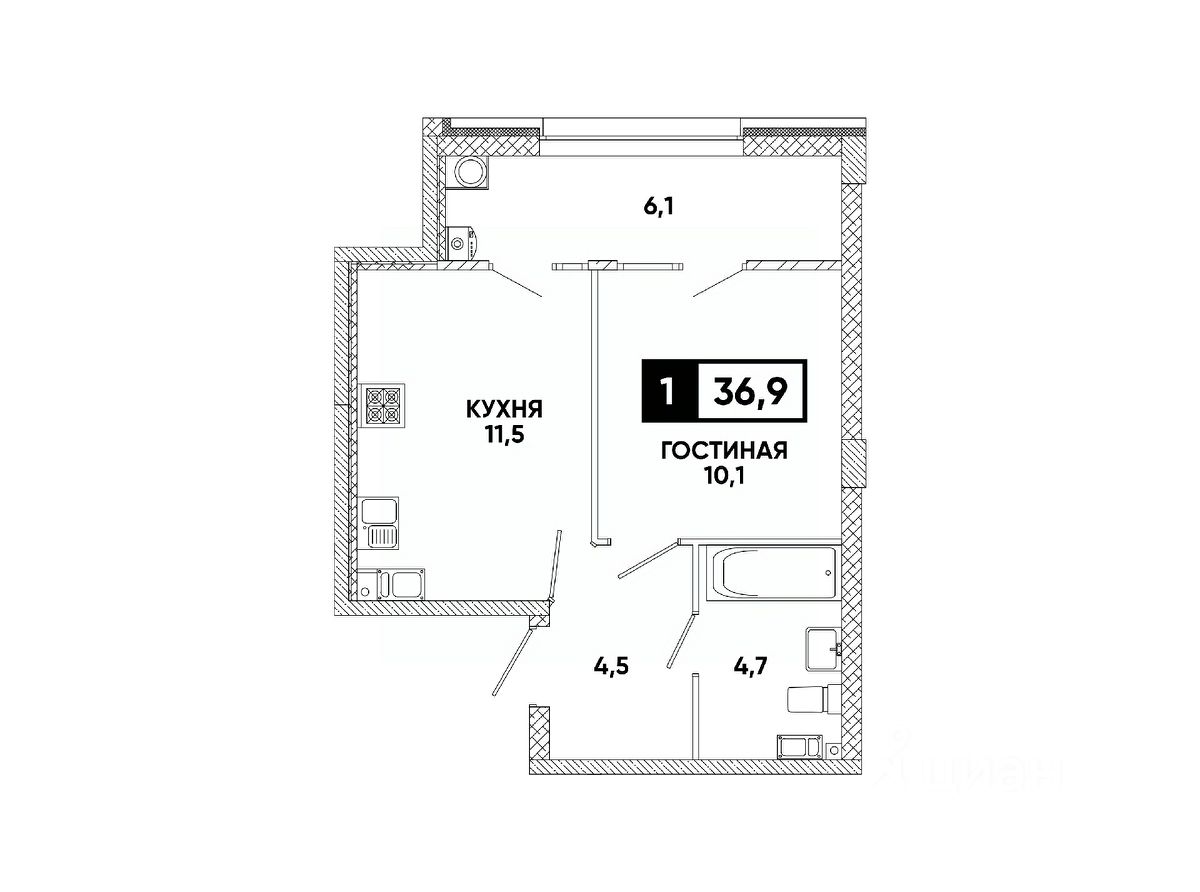 — Грамотная планировка, легко зонируется на спальню и гостиную;