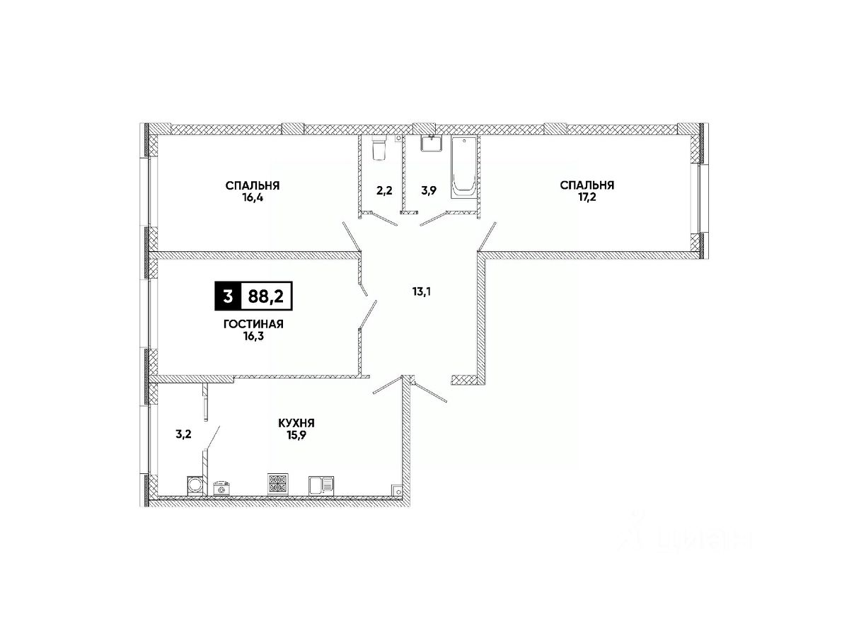 Общая площадь88,2 м²