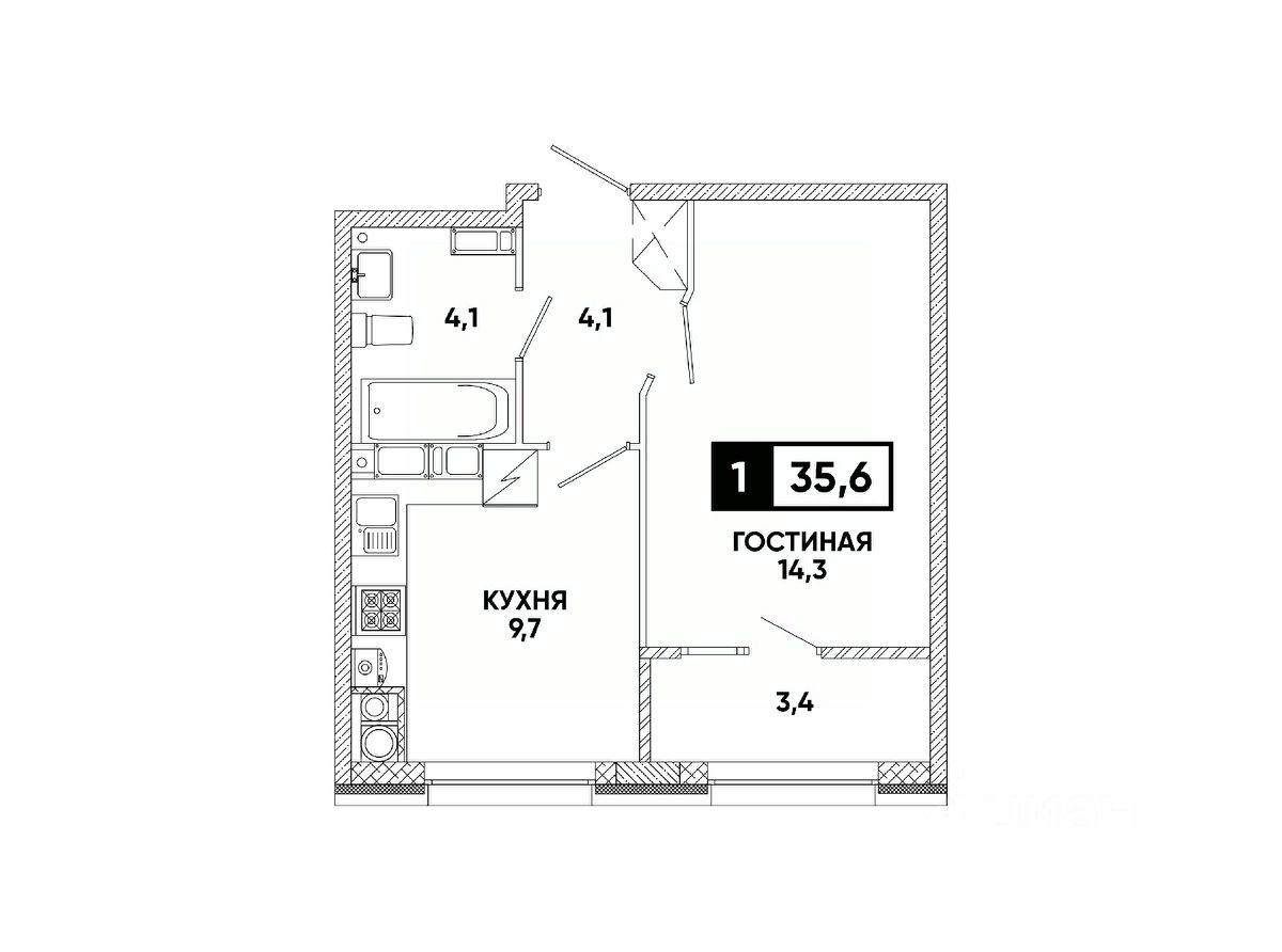 Общая площадь35,6 м²