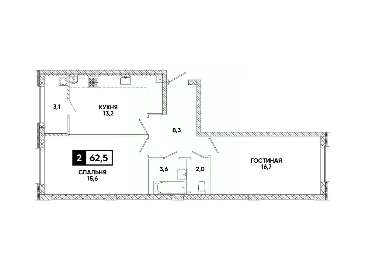 Общая площадь62,5 м²