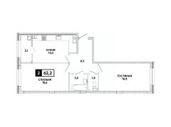 Общая площадь62,2 м²