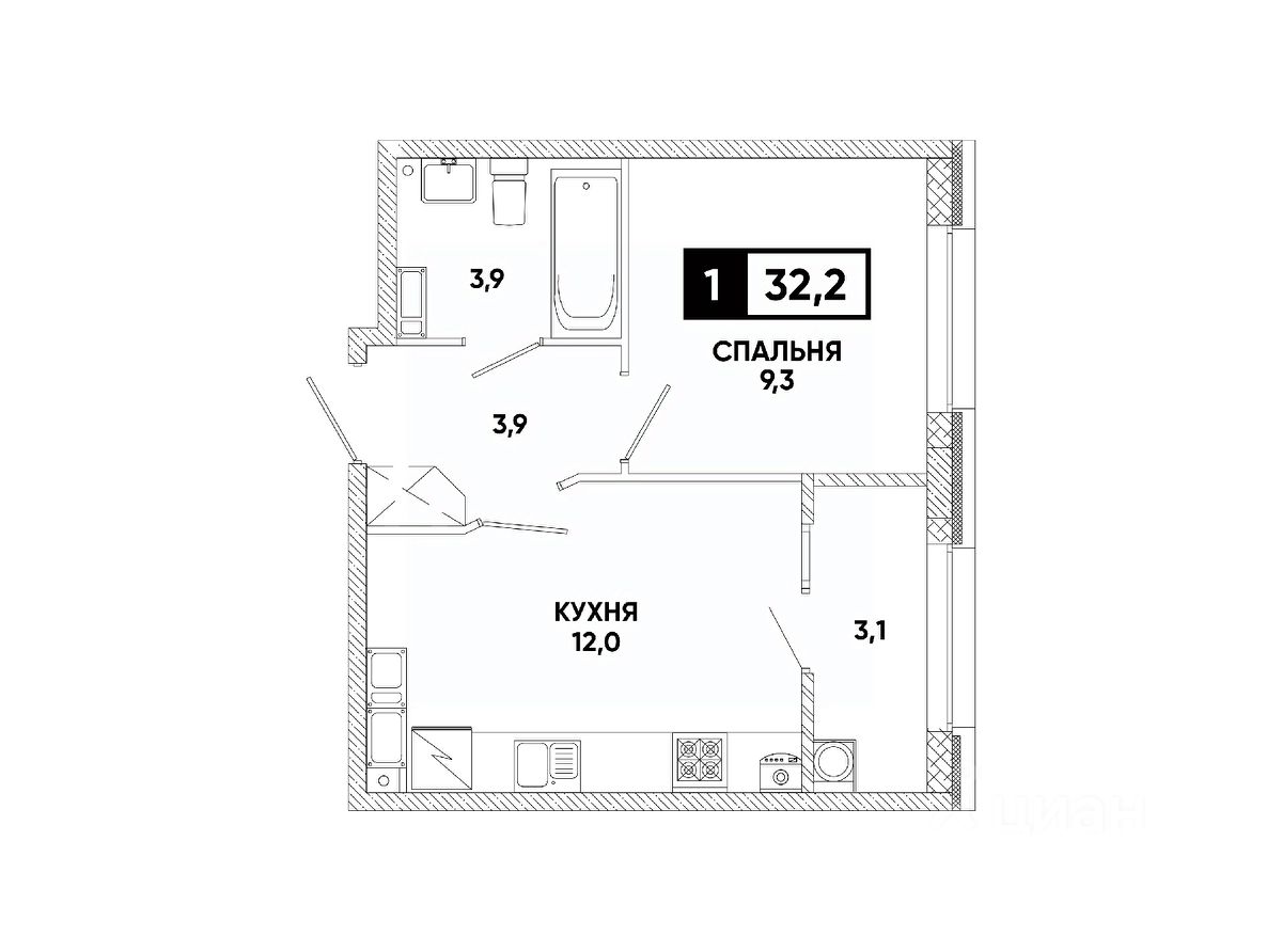 Общая площадь32,2 м²