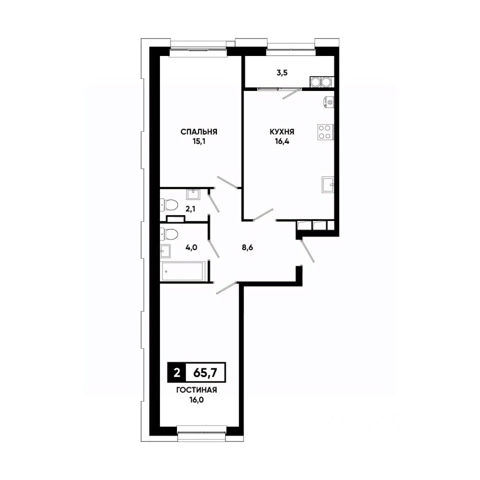 Общая площадь65,7 м²