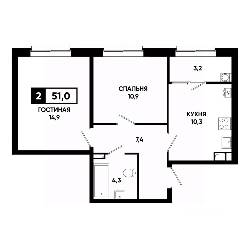 Общая площадь51 м²