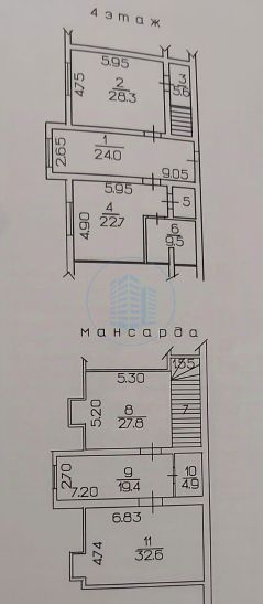 На втором этаже три спальни (27,8+19,4+32,6 кв.м.) Санузел.