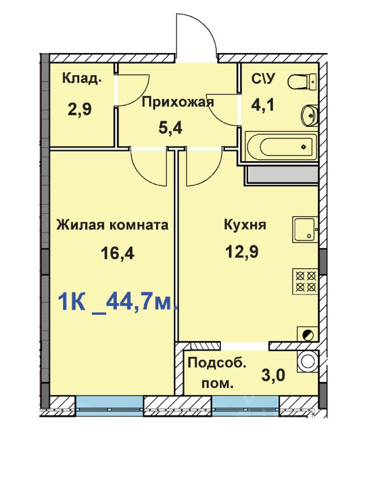 44,7 м²