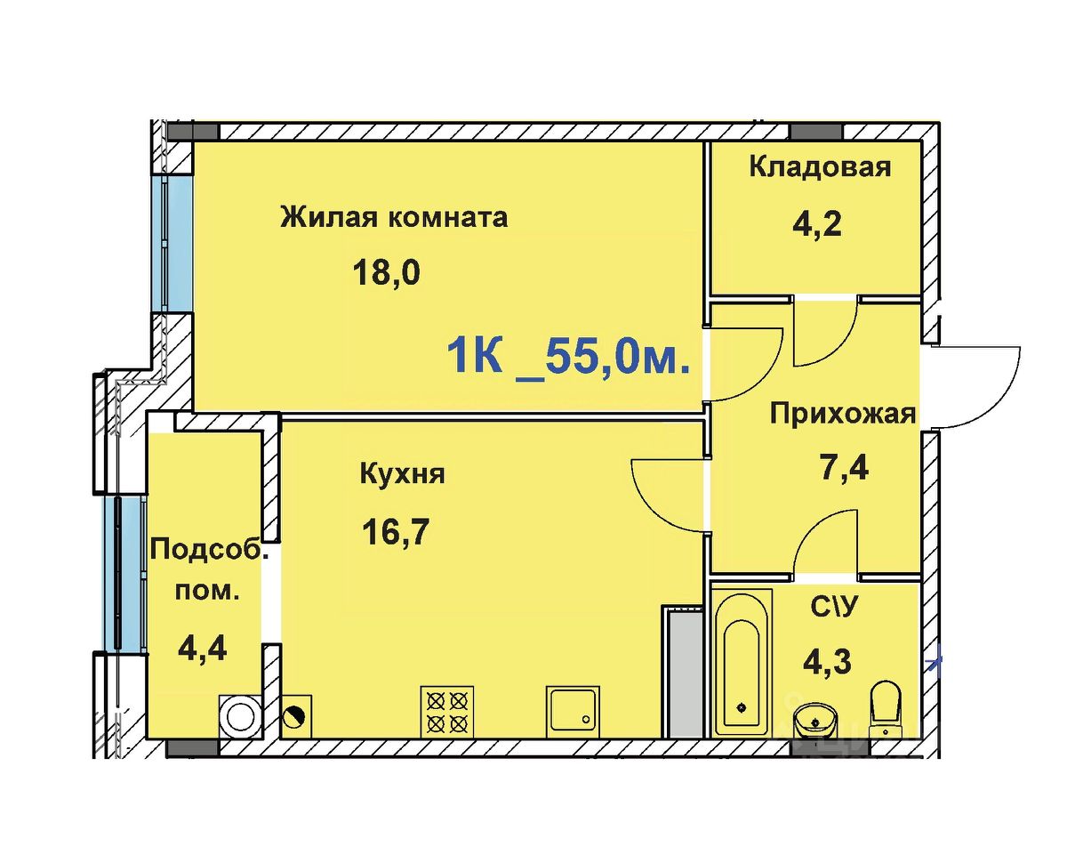 55 м²