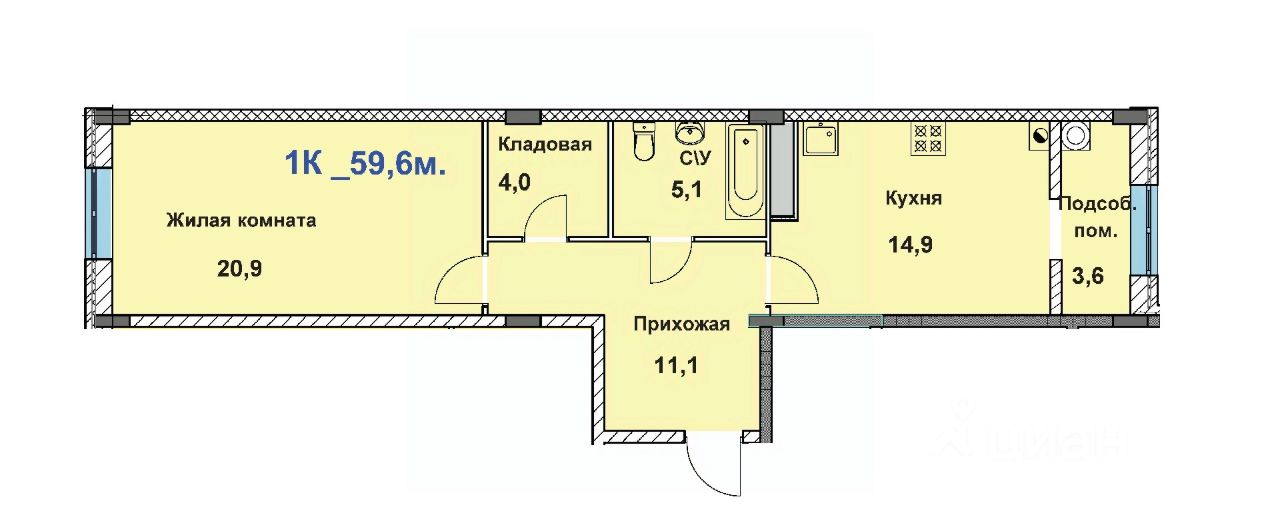 59,6 м²