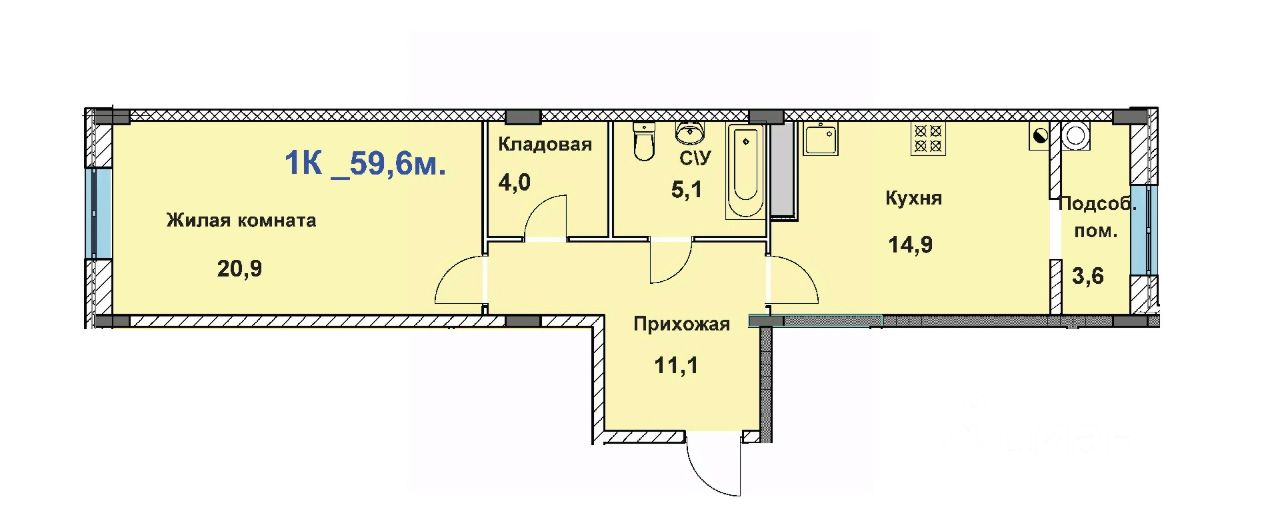 59,6 м²