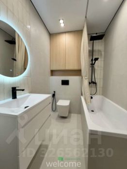 - Ванная: ванна, инсталляция, гигиенический душ, мебельный шкаф, раковина, зеркало с подсветкой.