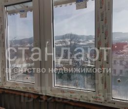 - В квартире: 2 комнаты, кухня, окна с видом на горы, застекленный балкон, есть небольшой участок под окнами с хозпостройкой, спокойные соседи. Вся мебель остается.