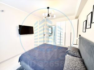 Две изолированные большие спальни с мебелью, телевизором, коврами и комплектами постельного белья. Кухня оснащена гарнитуром, техникой и даже комплектами посуды. Большой совмещенный саунзел со встроенной стиральной посудой. Прихожая со встроенной мебелью для хранения вещей, обуви и верней одежды.