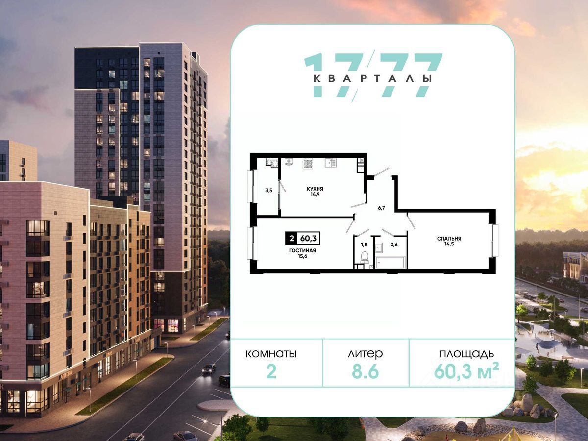 ДВУХКОМНАТНАЯ КВАРТИРА В ЖК "КВАРТАЛЫ 17/77" — это не просто жилье, а место, где каждый уголок создан для вашего комфорта и спокойствия!