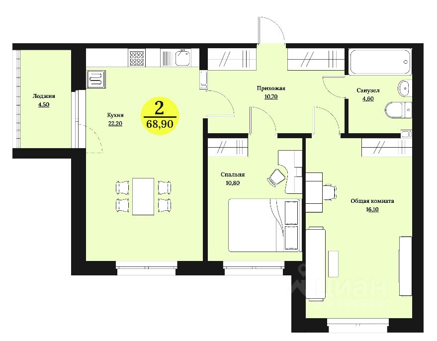 Общая площадь68,9 м²