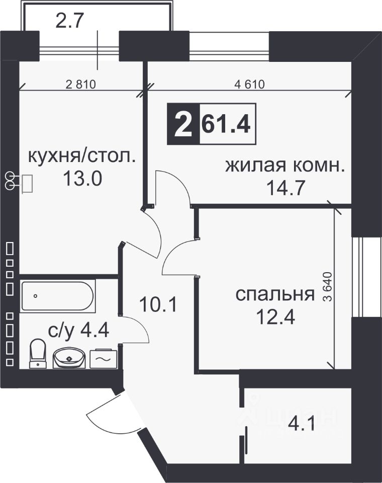 61,4 м²