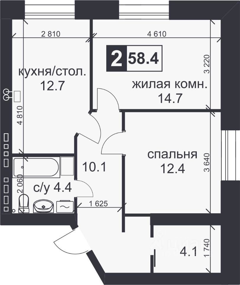 58,4 м²