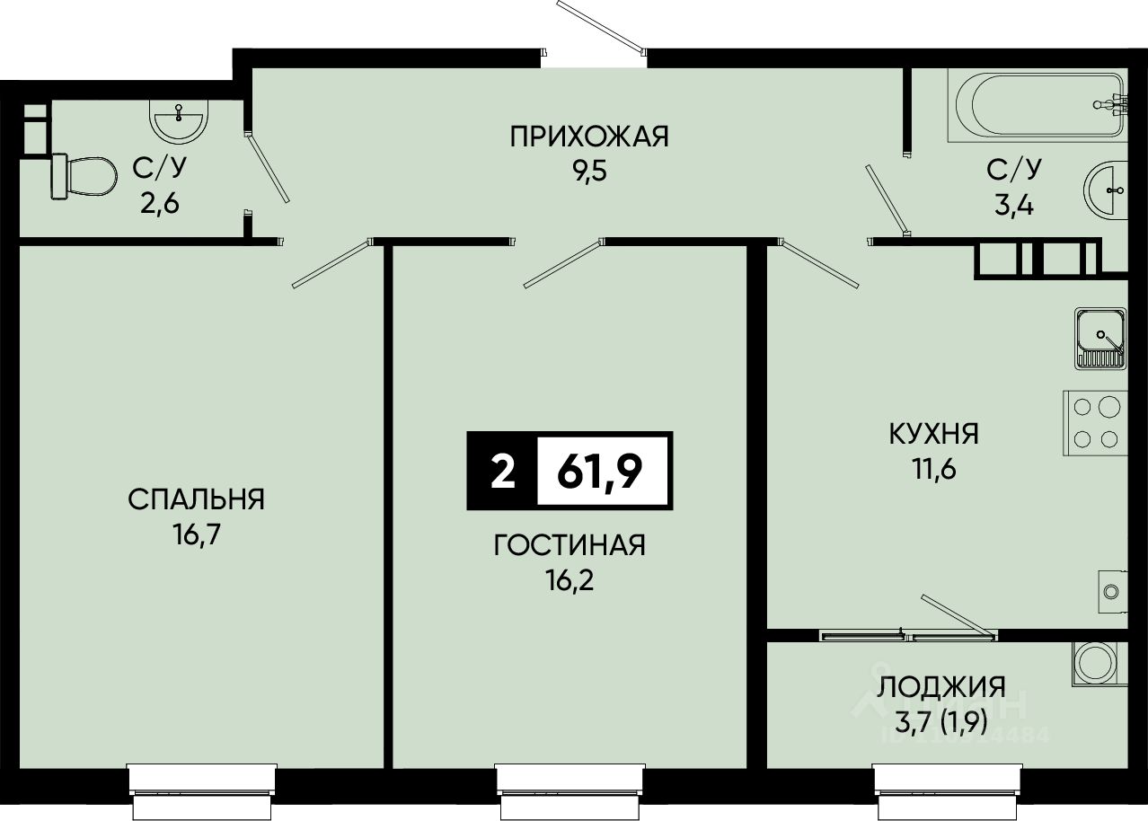 Общая площадь61,9 м²