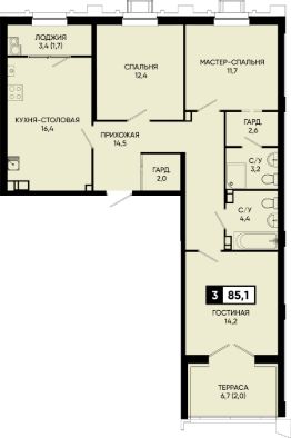 Общая площадь85,1 м²