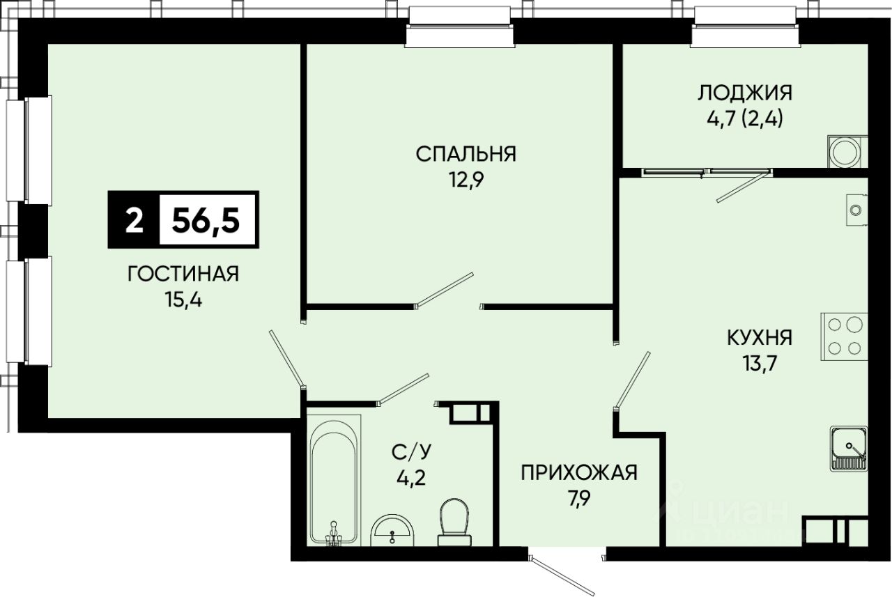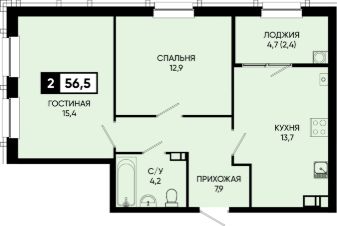 Общая площадь56,5 м²