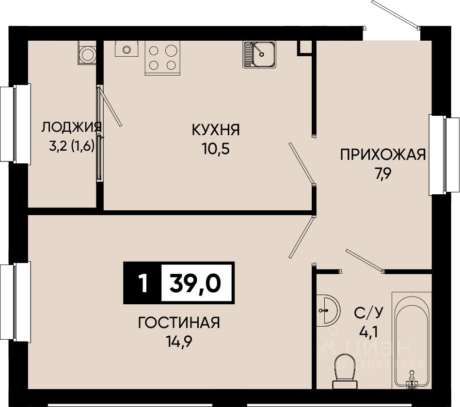 Общая площадь39 м²