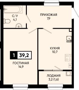 Общая площадь39,2 м²