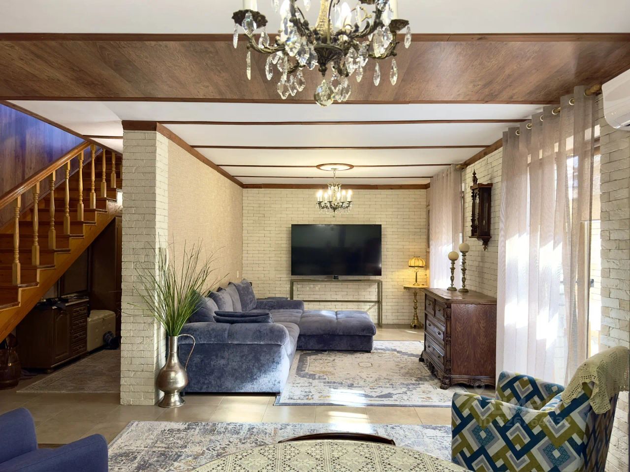 При подъеме на 2 этаж у нас имеется хорошая шаговая лестница, далее располагается 3 спальные комнаты (в каждой сплит система) и ванная комната с санузлом. Вся встроенная мебель остается. Индивидуальное отопление.