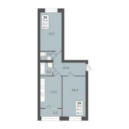 Продаётся 2-комнатная квартира в строящемся доме (Позиция 5), срок сдачи: IV-кв. 2026, общей площадью 66.4 кв.м., на 4 этаже.