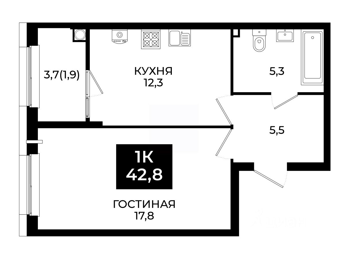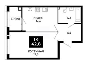 Общая площадь42,8 м²